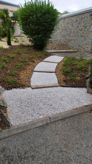 Création de jardins sur mesure, pose de gazon synthétique, murets en pierres, escaliers paysagers, plantations, arrosage automatique ou entretien complet :